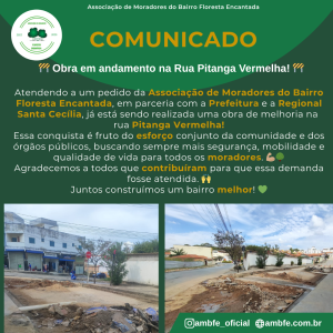 Atendendo a um pedido da Associação de Moradores do Bairro Floresta Encantada, em parceria com a Prefeitura e a Regional Santa Cecília, já está sendo