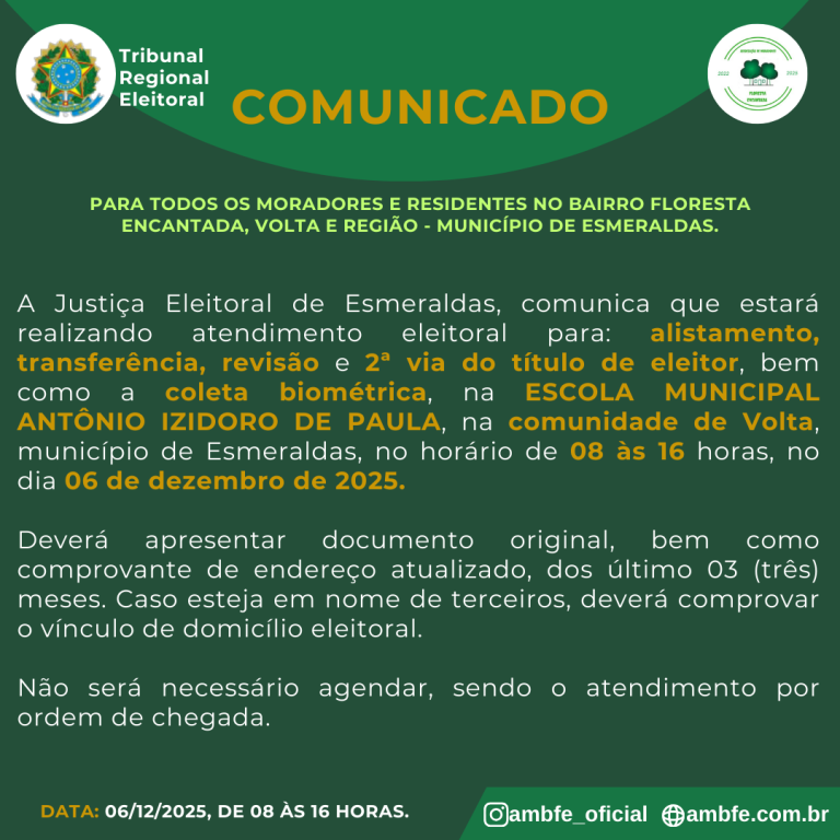 TRIBUNAL REGIONAL ELEITORAL DE MINAS GERAIS108ª ZONA ELEITORAL – ESMERALDASCOMUNICADO Nº 001/2025